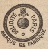 "SOLIDITE * PARIS *" ou "SOLIDITE PARIS * DEPOSE 1875": marque commerciale d'un fabricant de boutons l'entreprise NEAU - LECOMTE et MIGEON.